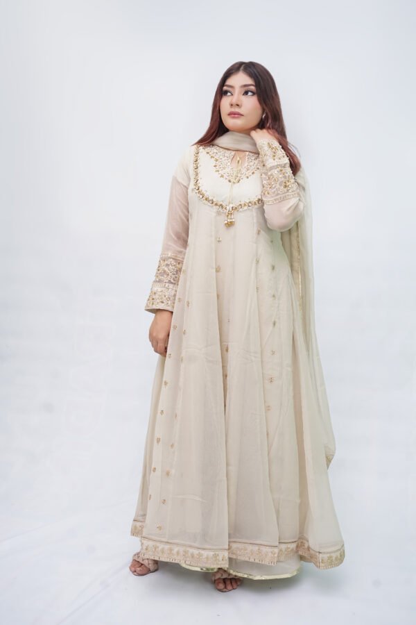 3-Piece Off-White Khadi Suit with Pearl, Stone, and Chikankari Embroidery