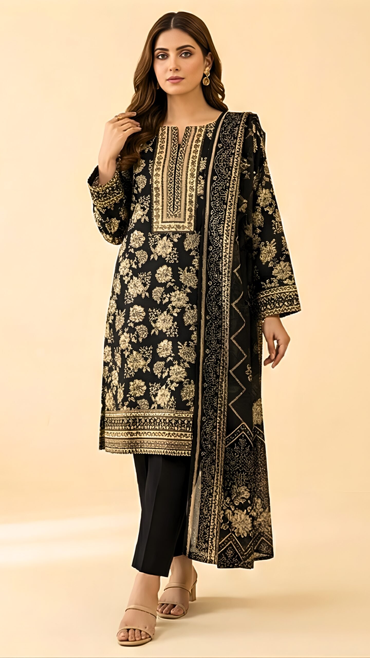 Be the first to review “Black Printed 3-Piece Linen Banadora Suit with Printed Dupatta”